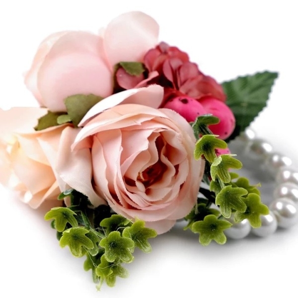 Krásný perlový náramek s růžičkami je určený především pro svědkyni, družičky, maminku nebo se jím také ráda vyzdobí každá žena na romantické letní či květinové párty.