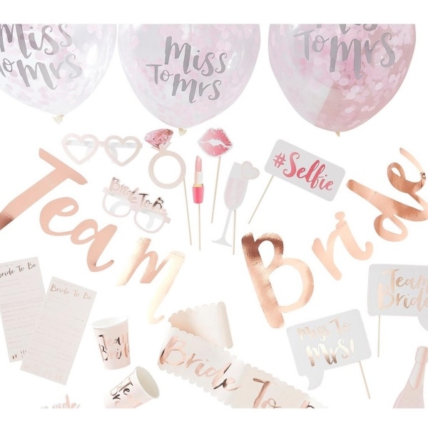 pokud si chcete rozlučku se svobodou užít se vším všudy i s kamarádkami, pak jsou tyto krásné doplňky v růžovém zlatě Bride to Be tím pravým.